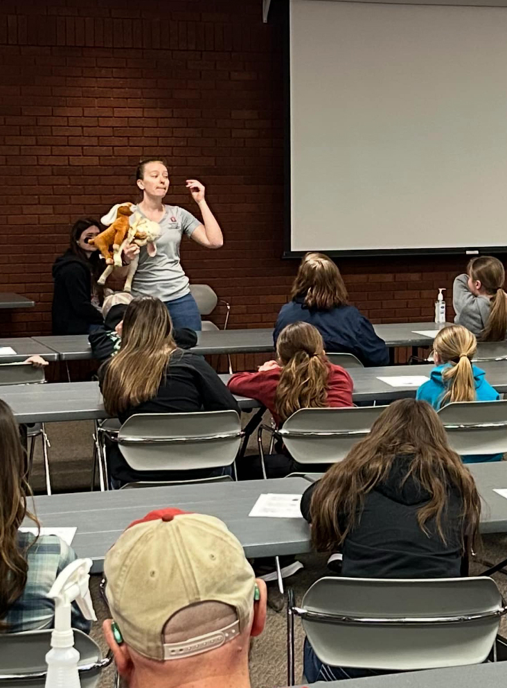 OSU 4-H Extension Educator Jacci Smith provides a discussion on lambing and allows participants to deliver a lamb with the lambing simulator.